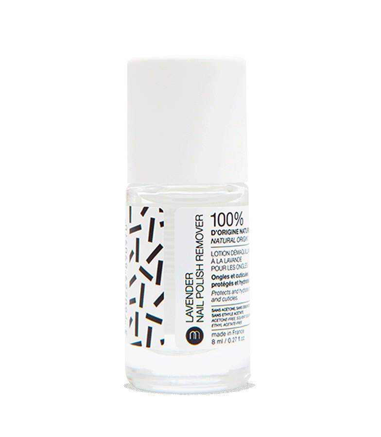 Lavender Nail Polish Remover est un démaquillant pour les ongles parfumé à la lavande et enrichi en huile d’amande douce, composé à 100% de solvants bio-sourcés à base de blé, de maïs et de sucre de canne.